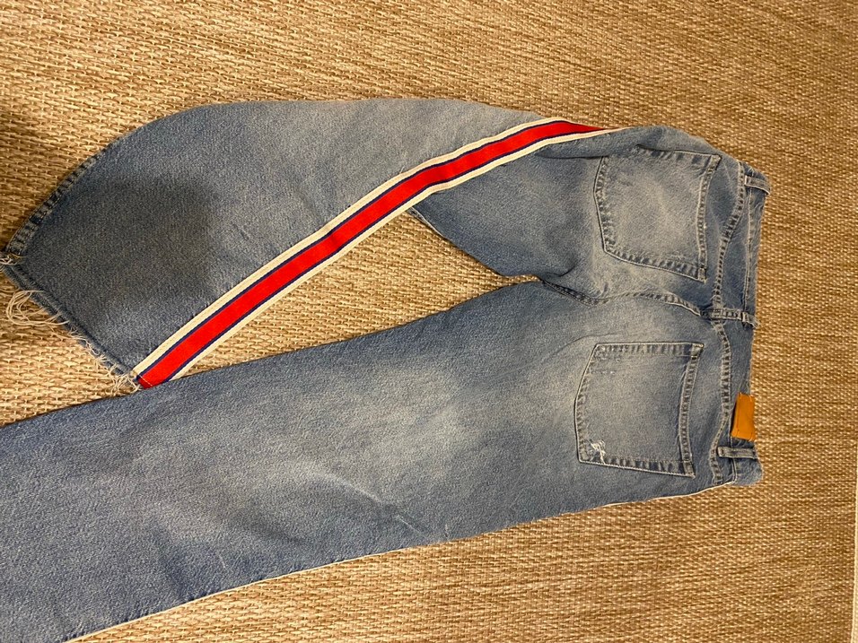Kadınlar için regular fit, çizgili tasarımlı ve cırt cırt detaylı gri denim jean. Midi boy, günlük sokak stiline uygun.