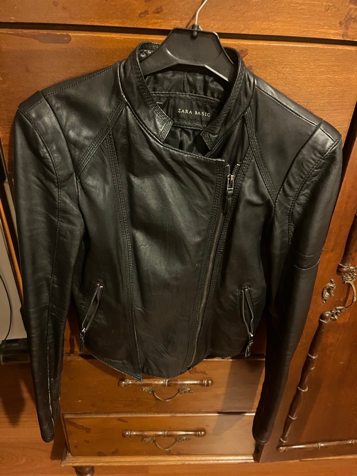 Zara siyah ceket Gerçek Deridir. 2-3 yerinde renk açılmaları vardır. Fotoğraflarda görülmektedir. Dar kesim bir cekettir