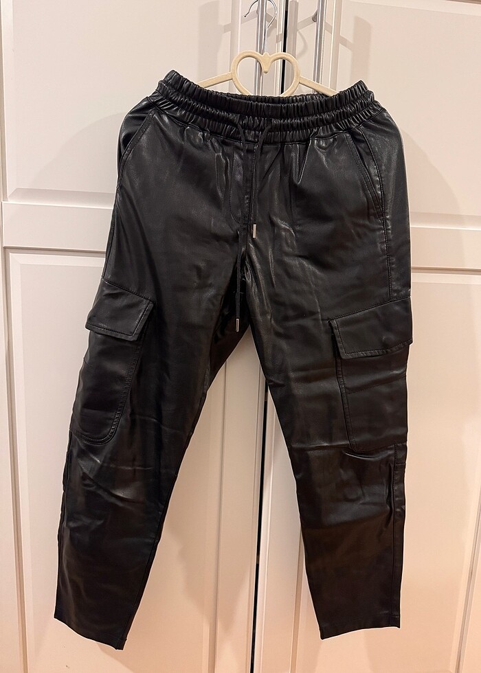 Ürünü bir kere giydim cep detaylı bağcık detaylı deri pantolon