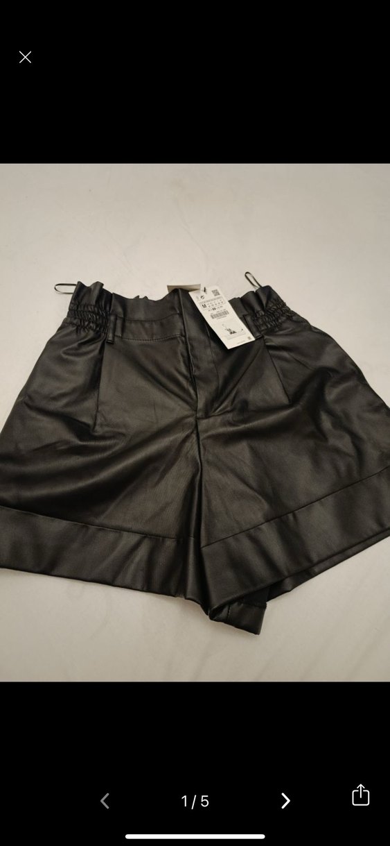 Hiç kullanmadım fazlalıktan satıyorum Siyah deri, kemerli ve bol kesim mini şort. Sokak modasına ve romantik akşamlara uygun, desensiz avant-garde tarzı.