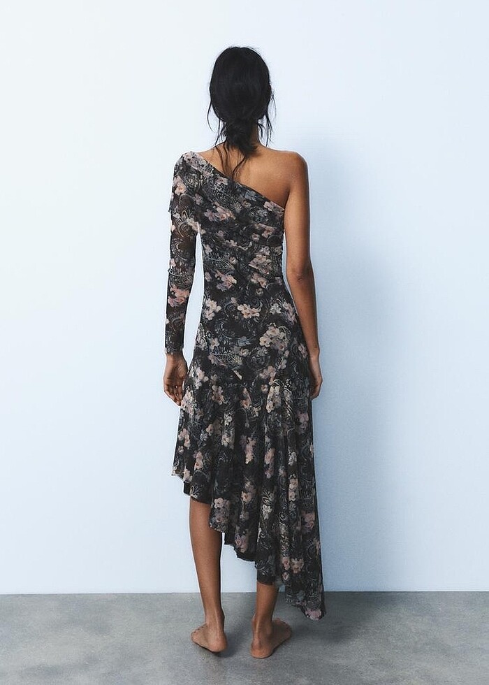 Zara asimetrik desenli tül elbise. Tek omuz detaylı, asimetrik yakalı, uzun kollu, asimetrik kesim elbise #yeni#etiketli#asimetrik#desenli#tül#elbise