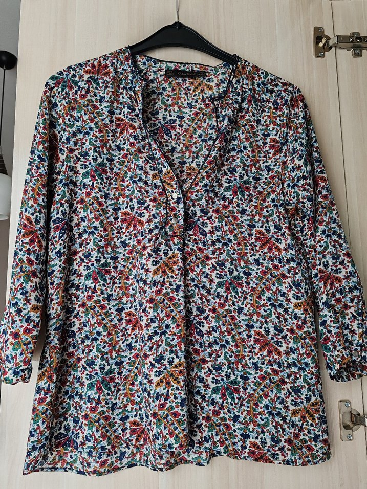 Bol kesim, uzun kollu kadın gömlek. Çiçek desenli, çok renkli, yakalı ve düğmeli. Midi boyda, bohem tarzda, günlük kullanım için uygun.