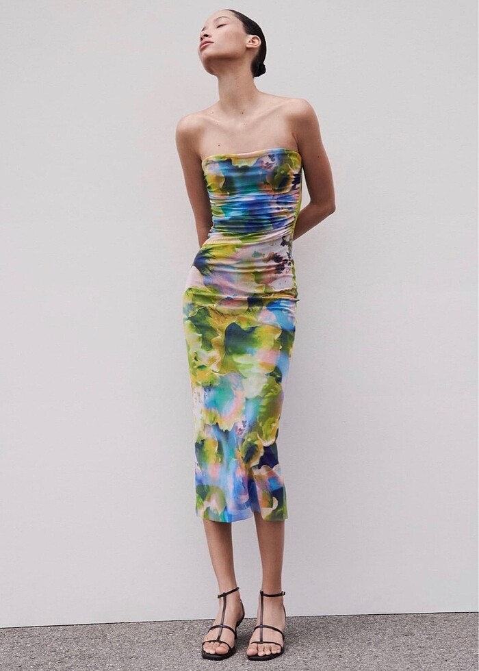 Zara Desenli Straplez Elbise