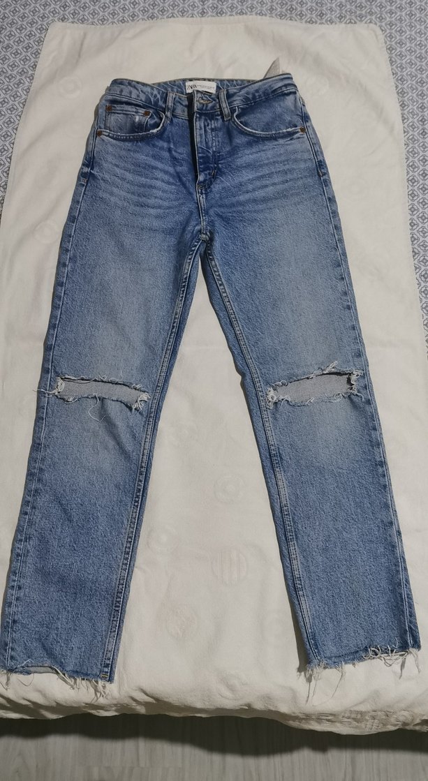 Zara Diz Yırtıklı Mavi Kadın Denim Pantolon