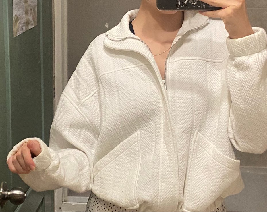 Birkaç kez giyildi . xs-s beden.Yüksek yakalı, uzun kollu ve bol kesim beyaz kadın mont. Yumuşak ve sıcak kumaştan, fermuarlı ön ve büyük iki cep bulunur. Minimalist sokak stiline uygun.