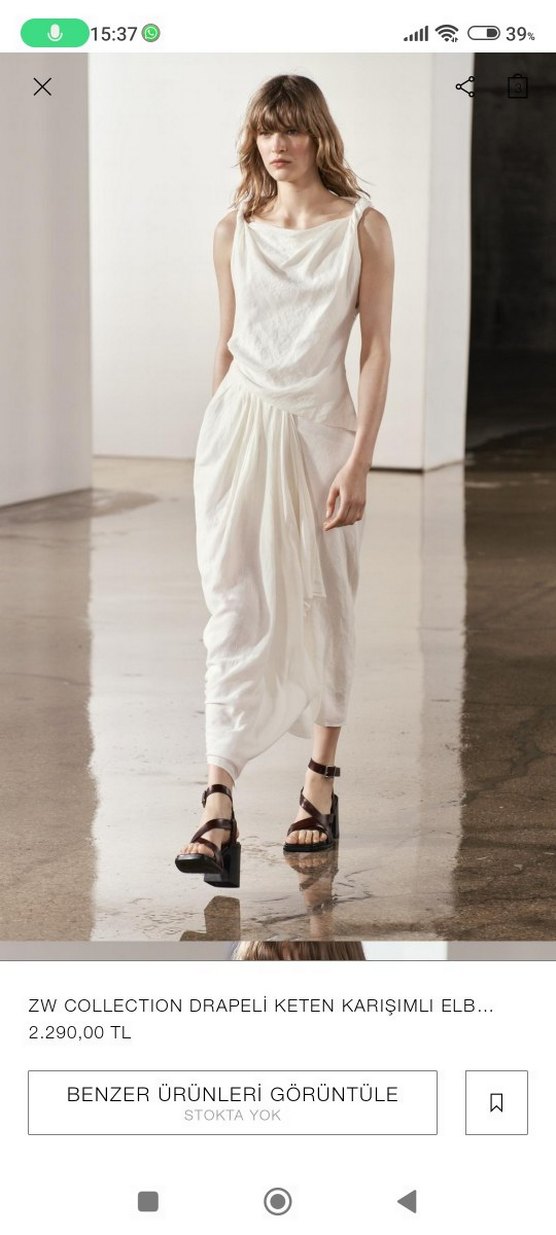Zara Drapeli Beyaz Keten Uzun Elbise