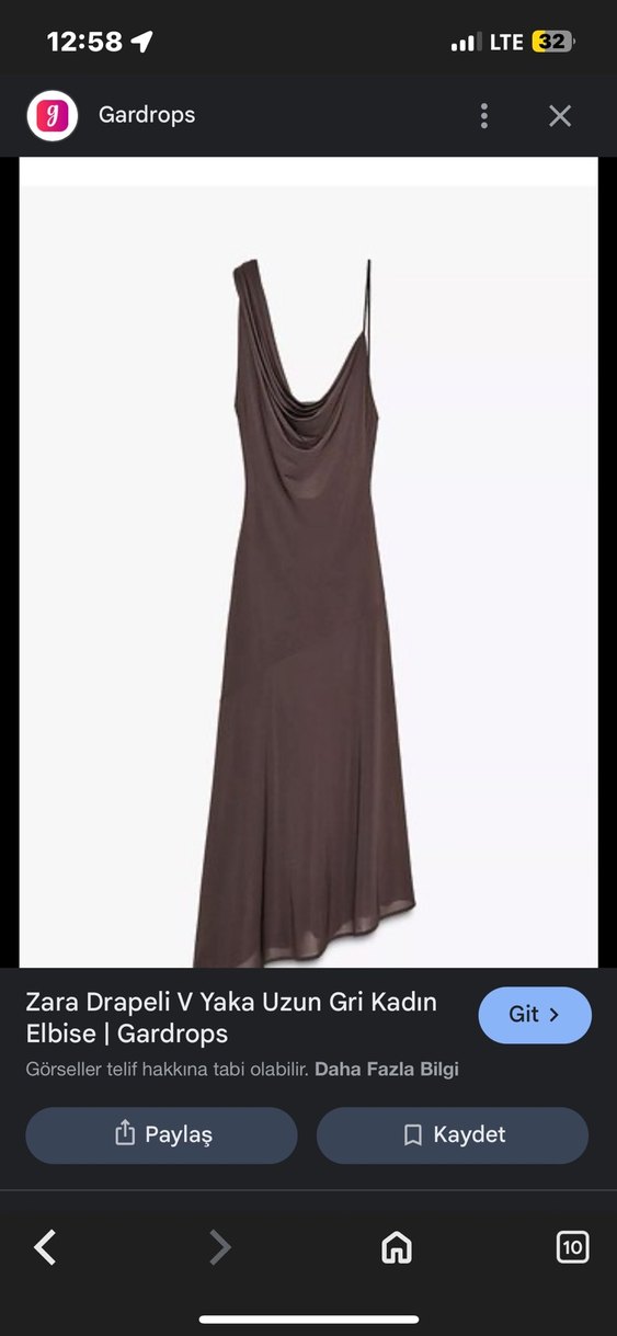 Zara Drapeli V Yaka Uzun kahverengi Elbise