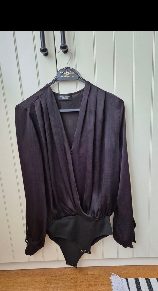 1 kez giyildi. Kolları taş düğme detaylı, şifon çok şık bir body. Fotoğrafta rengi soluk çıkmış siyah renktir.