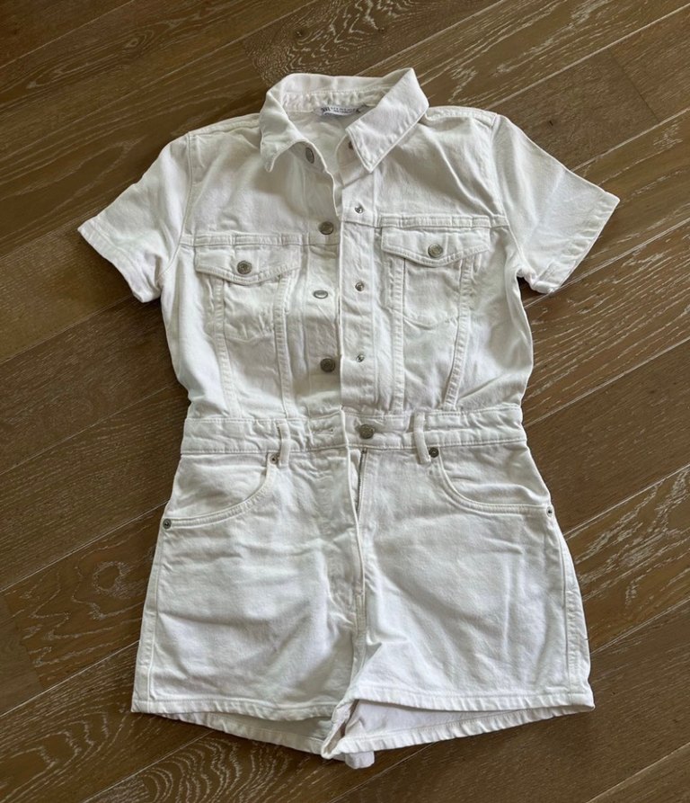 ZARA Düğmeli Beyaz Denim Mini Tulum