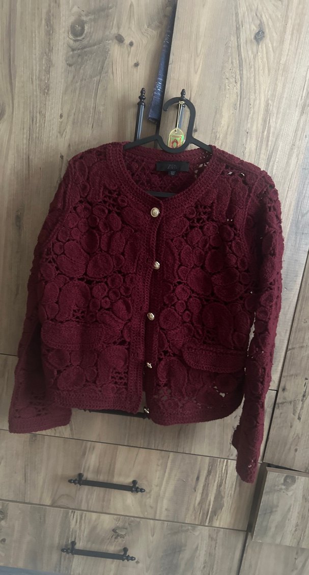 Zara Düğmeli Bordo Nakışlı Kadın Hırka