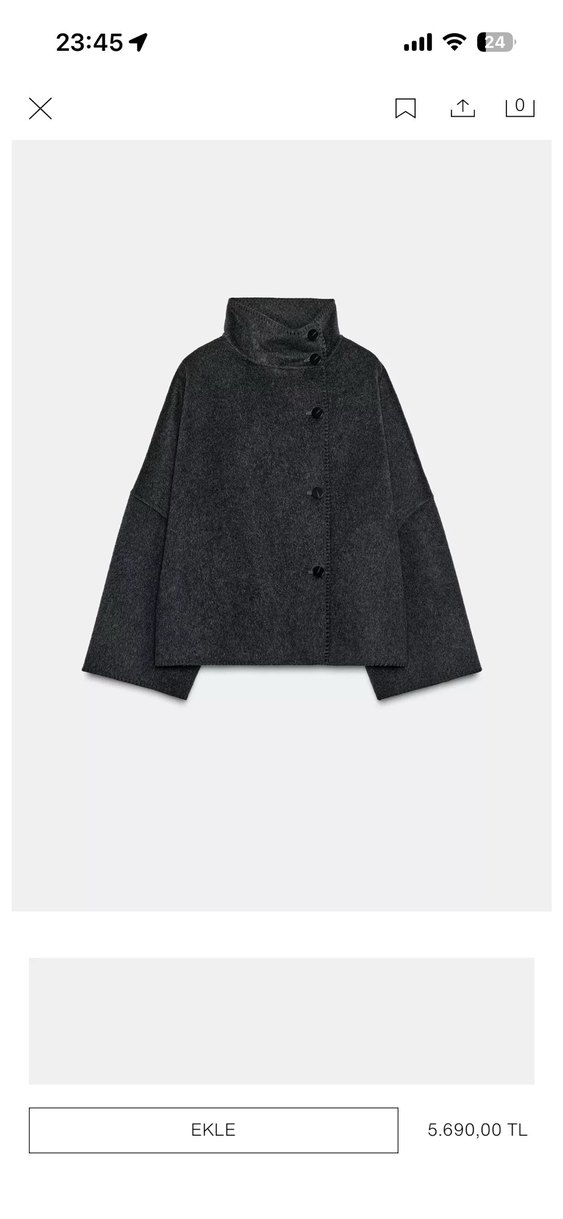 Zara Düğmeli Gri Kısa Kadın Yün Ceket