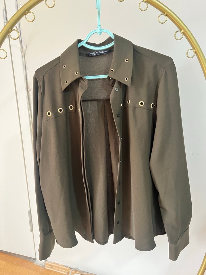 ZARA Düğmeli Haki Uzun Kollu Kadın Gömlek
