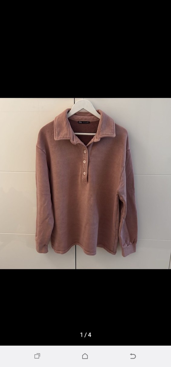 Düğmeli, yakalı ve uzun kollu sweatshirt. Rahat kesimi ve orta boy uzunluğuyla yumuşak ve sıcak kumaştan üretilmiştir.