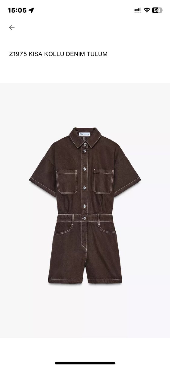 Zara-Düğmeli Kahverengi Kısa Denim Tulum