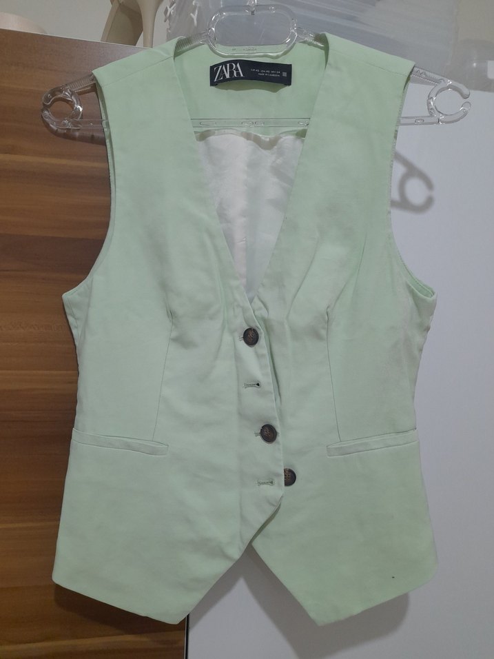 Zara Düğmeli Keten Kadın Yelek