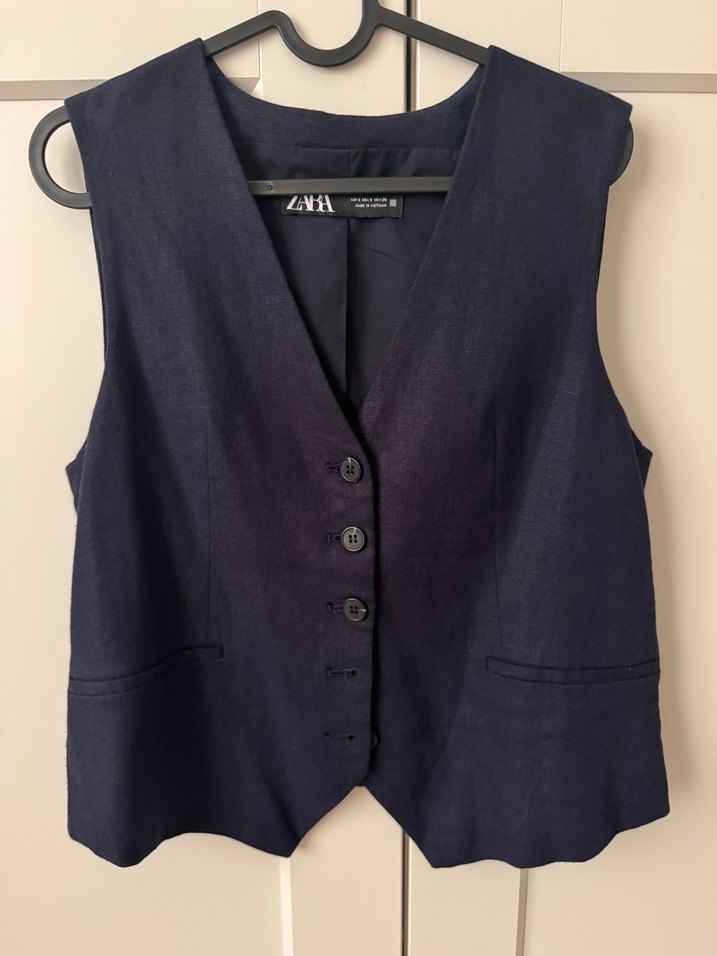 Zara Düğmeli Keten Kadın Yelek Lacivert