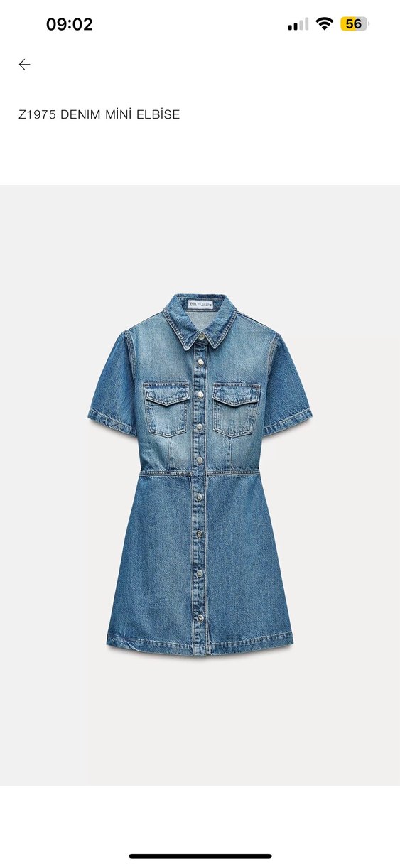 Zara Düğmeli Kısa Kollu Mavi Denim Elbise