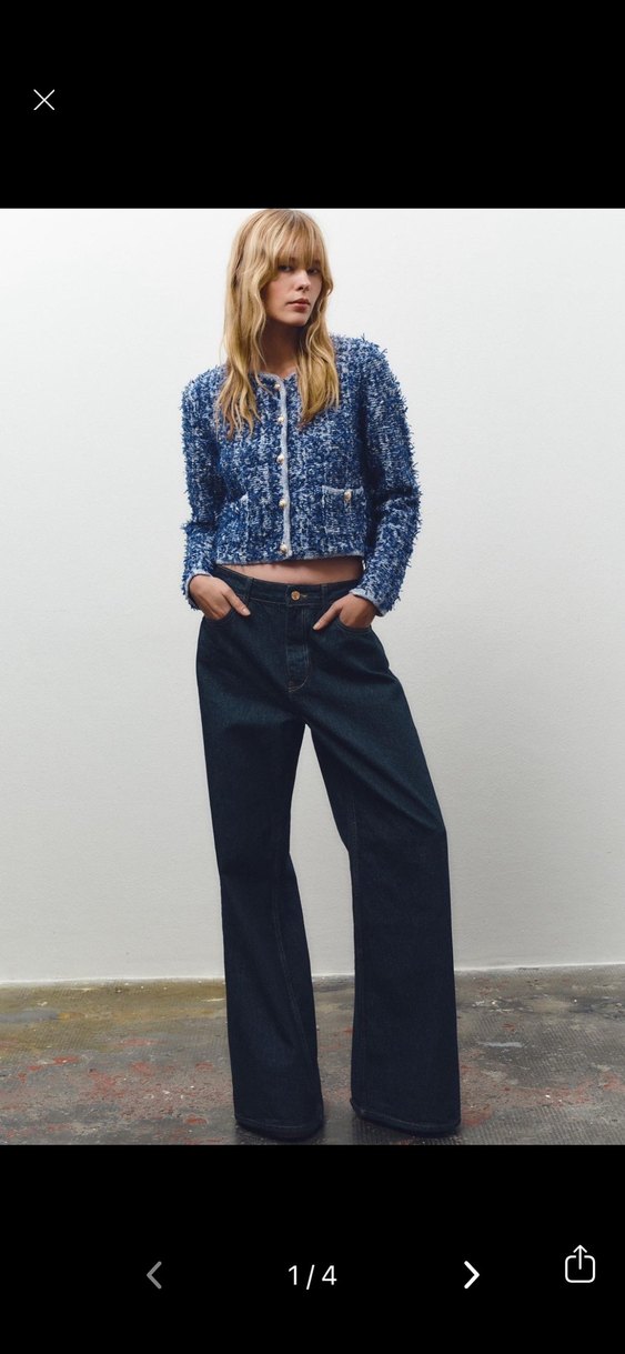 Zara Düğmeli Lacivert Kadın Geniş Kesim Denim Pantolon