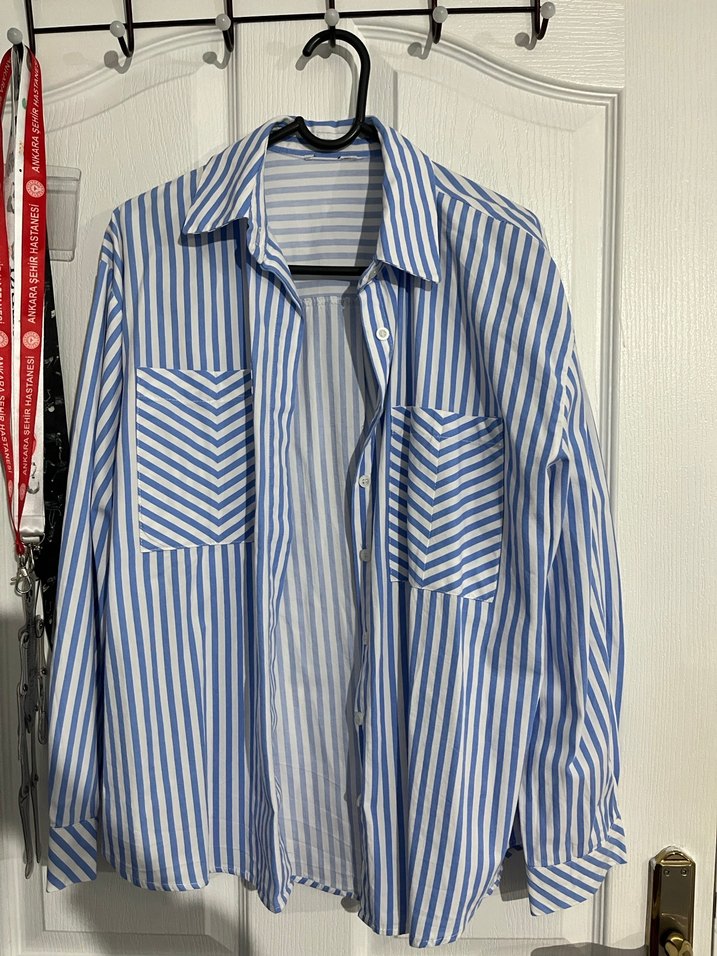 Zara Düğmeli Mavi Çizgili Kadın Gömlek