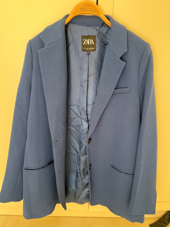 Zara Düğmeli Mavi Kadın Blazer Ceket