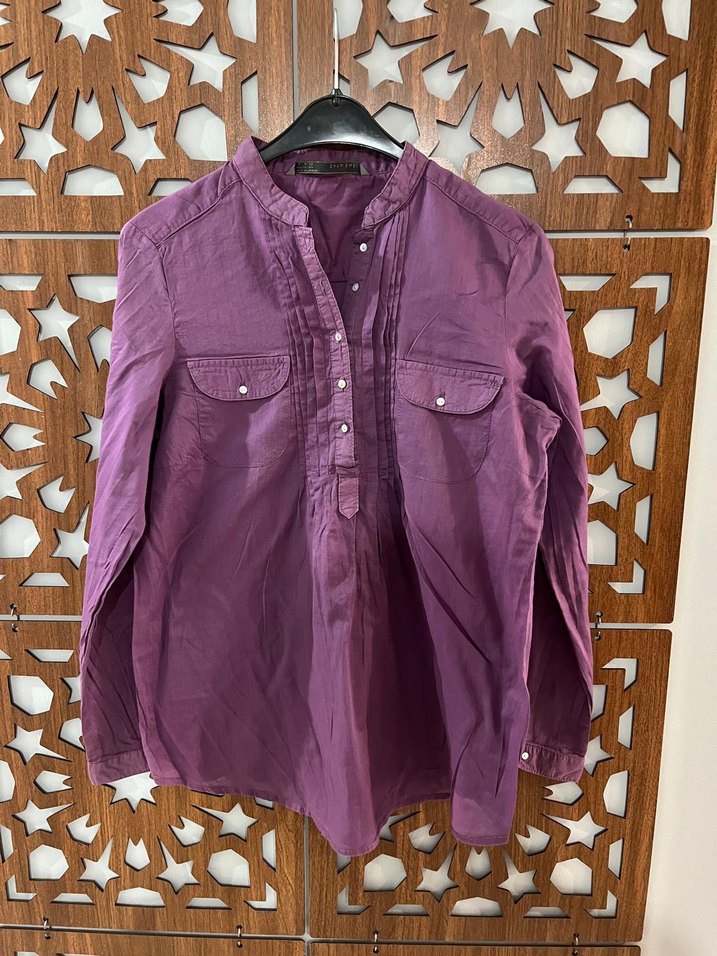 Zara Düğmeli Mor Kadın Keten Gömlek