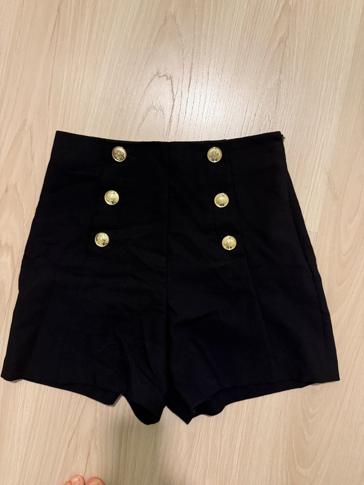 Zara Düğmeli Siyah Mini Yüksek Bel Kadın Şort