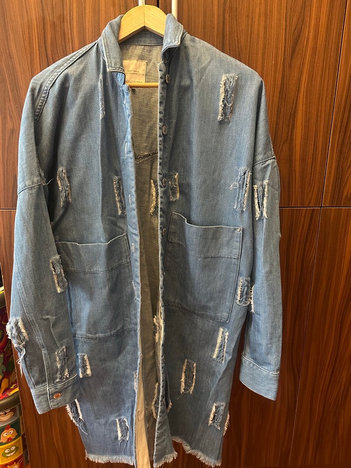 Düğmeli ve uzun kollu, bol kesim mavi denim ceket. Yıpranmış detaylarla sokak stiline uygun, günlük kullanıma elverişli. #zara #orjinal #iki koltuk arası 67 cm boy 93 cm, #yeni hiç giyilmedi , #oversize