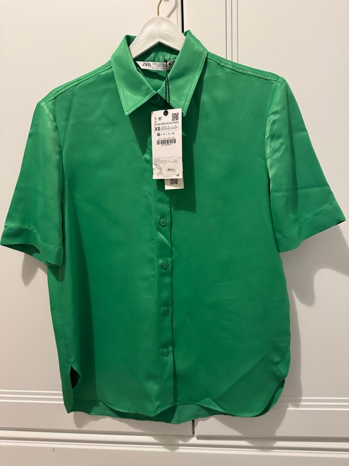 ZARA Düğmeli Yeşil Saten Kadın Gömlek