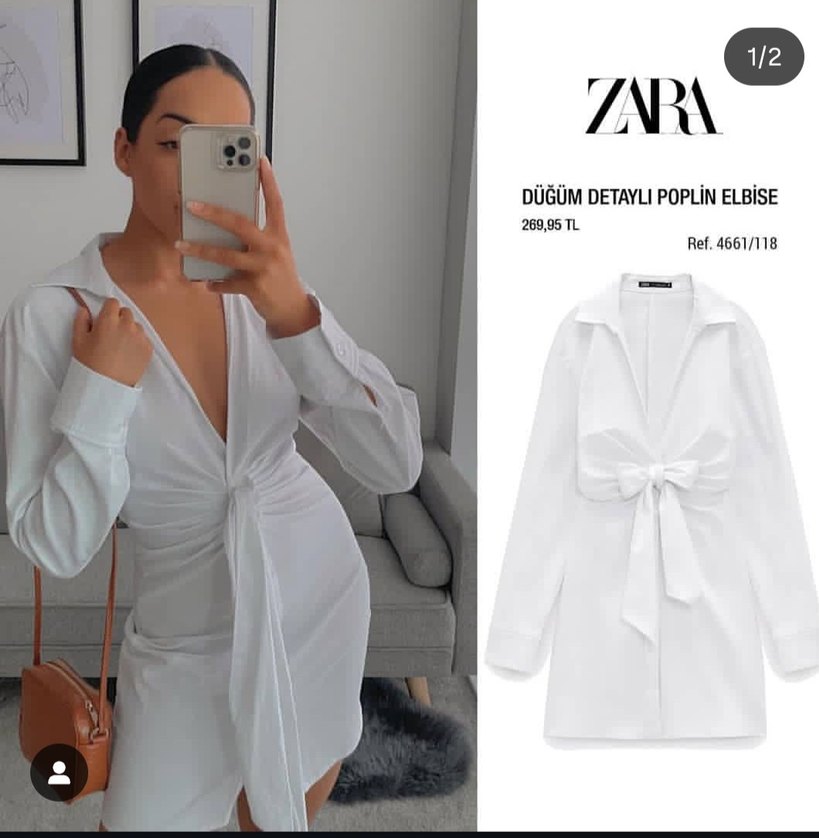 Zara'dan uzun kollu, düğüm detaylı beyaz midi elbise, minimal ve şık sokak tarzı sunar. ️orjinal zara iç etiketi kesik fiyata yansıtılmıştır