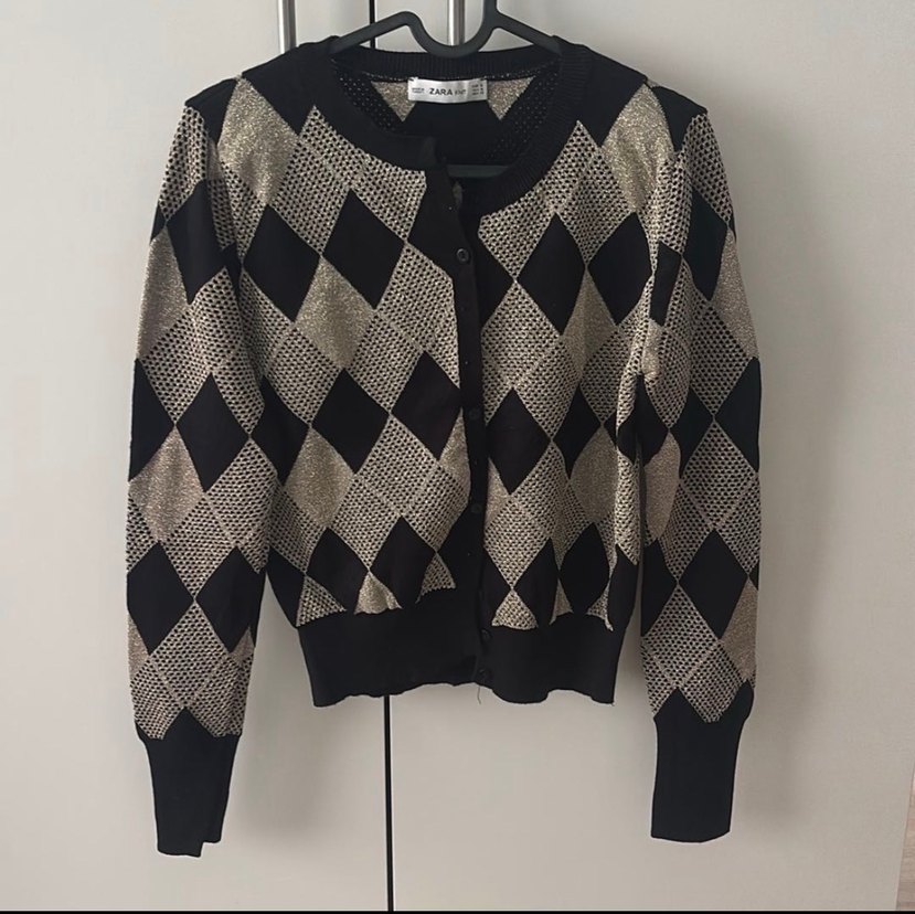 Zara Ekose Desenli Triko Hırka