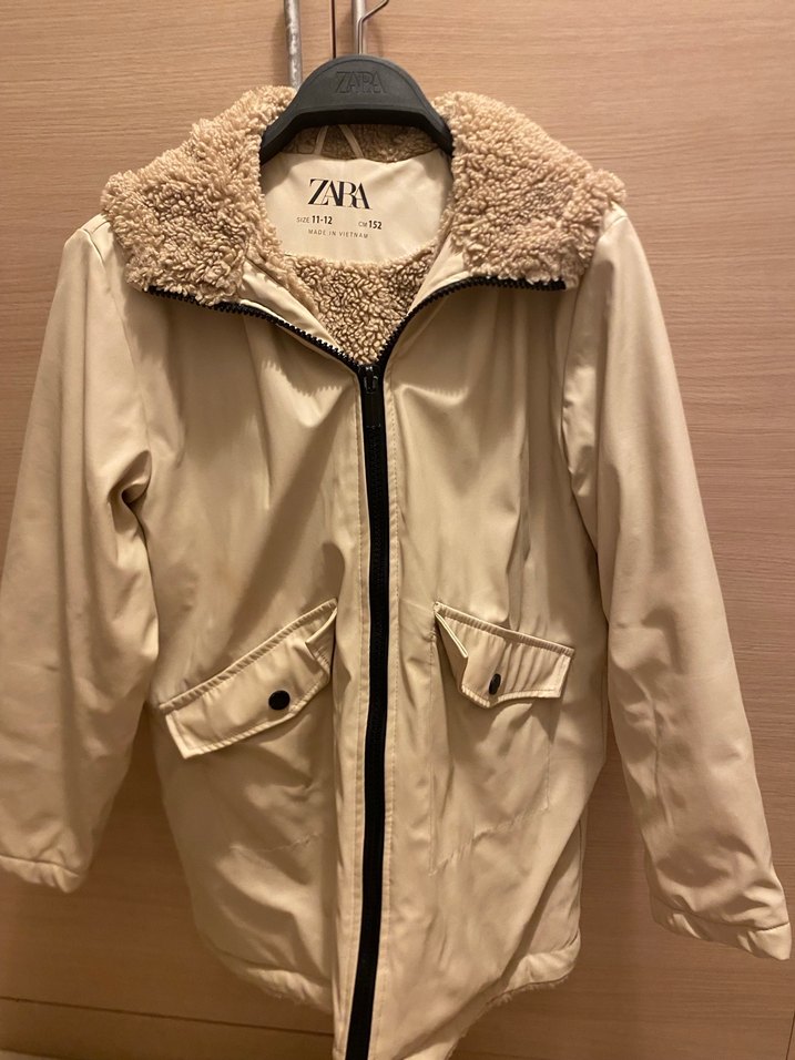 Zara'nın ekru midi uzunlukta, fermuarlı çocuk kabanı,yumuşak ve rahat yakası ile dikkat çekiyor. Salaş kesimi ve uzun kollu tasarımı günlük kullanıma uygundur.