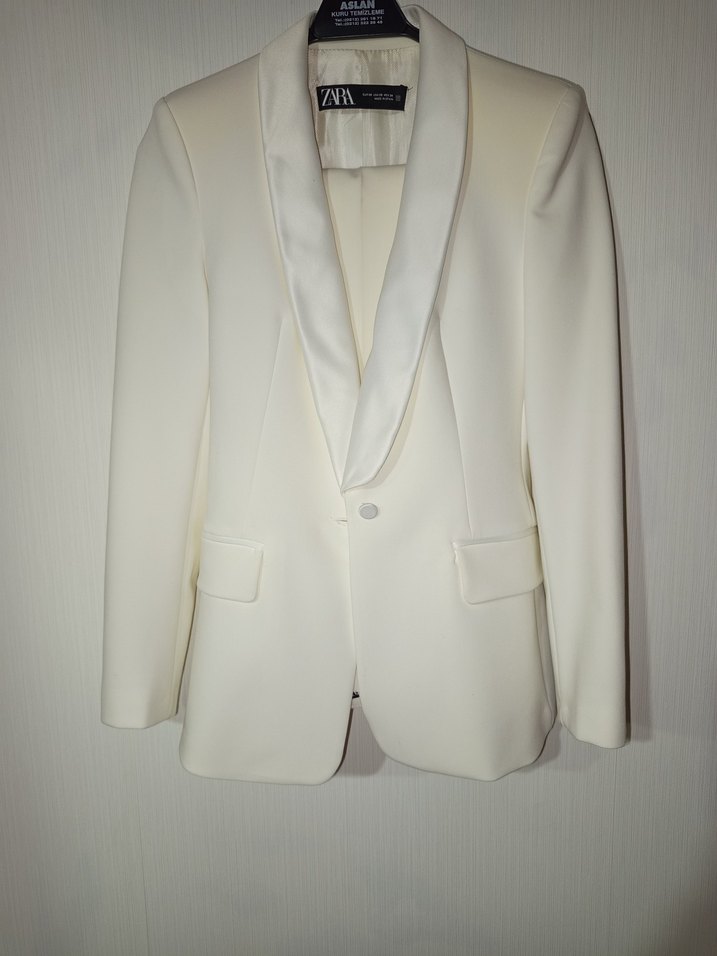 Orijinal ZARA marka ekru/krem takım elbise. Blazer ceket ve yüksek bel pantolon set olarak satılmaktadır. ✨ Şal yaka blazer model ✨ Tek düğmeli ceket ✨ Yan cep detaylı ✨ Şık, zarif ve minimal tasarım ✨ Özel gün, davet, nişan, söz, mezuniyet ve iş kombinleri için ideal Ürün temiz ve iyi durumdadır. Herhangi bir yırtık, sökük yoktur. Beden: Xs Renk: Ekru / Krem Marka: ZARA Detaylı fotoğraflar mevcuttur. İsteyenlere ölçü bilgisi atabilirim.