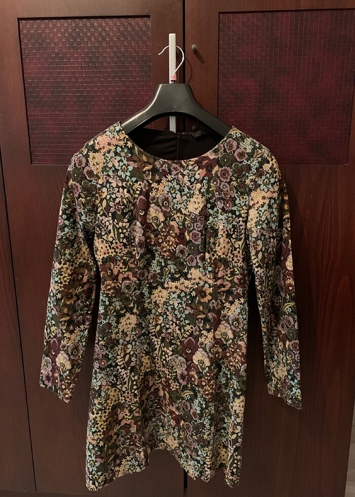 Elbise çan diz ustu cicek motifleri var uste cok şık duruyor