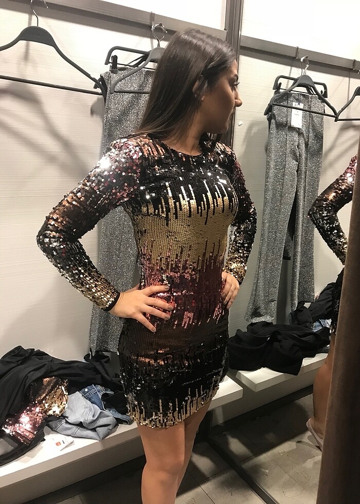 Zara pul payet elbise bir kez giyildi xs-s beden