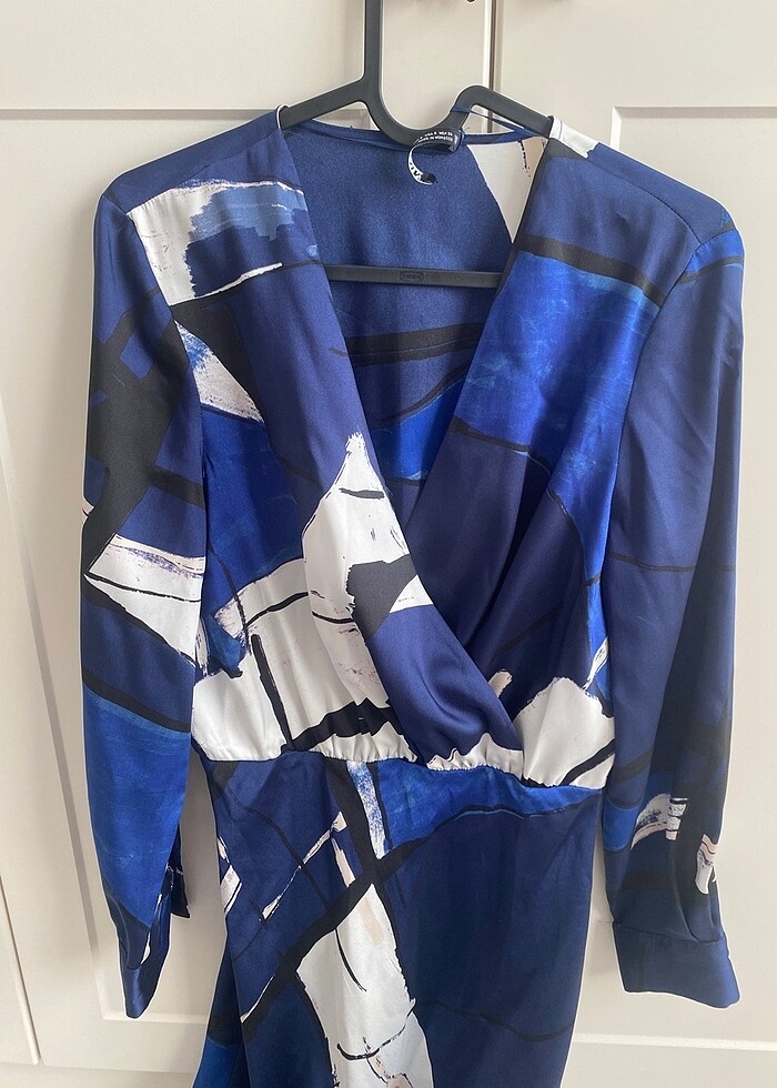 Ürünü hiç giymedim tesettürlüyüm benim için uygun olmadı süresi geçtiği için iade edemedik saten ağır kumaşlı şık kaliteli bir elbise