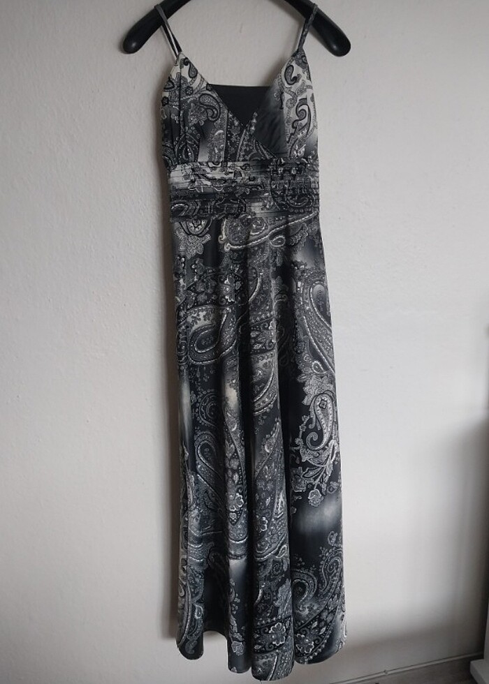 Kalın saten kalıp gibi duruyor yapışma yapmaz, sırt lastikli genişleye biliyor, küçük bir defolu var gözü rahatsız etmiyor, gögüs dekoltesi açık geldiğinden siyah satenden tadilat yaptırıldı istenildiğinde çıkartıla bilir,görselde paylaşıldıdı.zaea marka temsilidir. Boy 135cm.