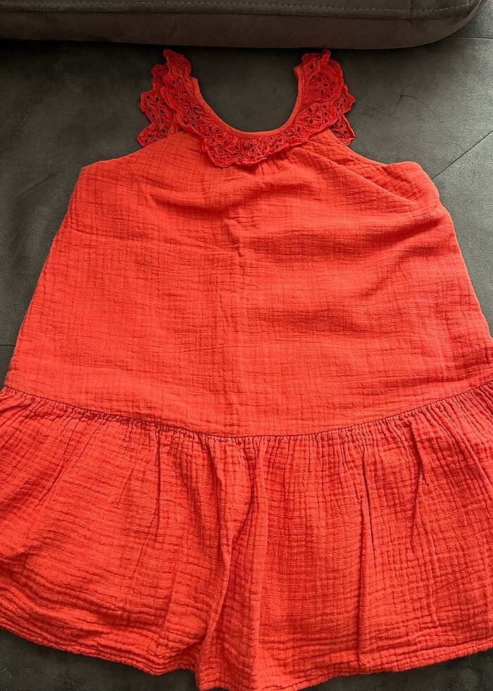 Zara’nın elbisesi 4-5 haş bedenşnde içi astarlı müslin kumaşında tertemiz ve sorunsuz kırmızı ve narçiçeği arasında bir renk sın fotoğrafta kumaşın cinsini görebilirsiniz