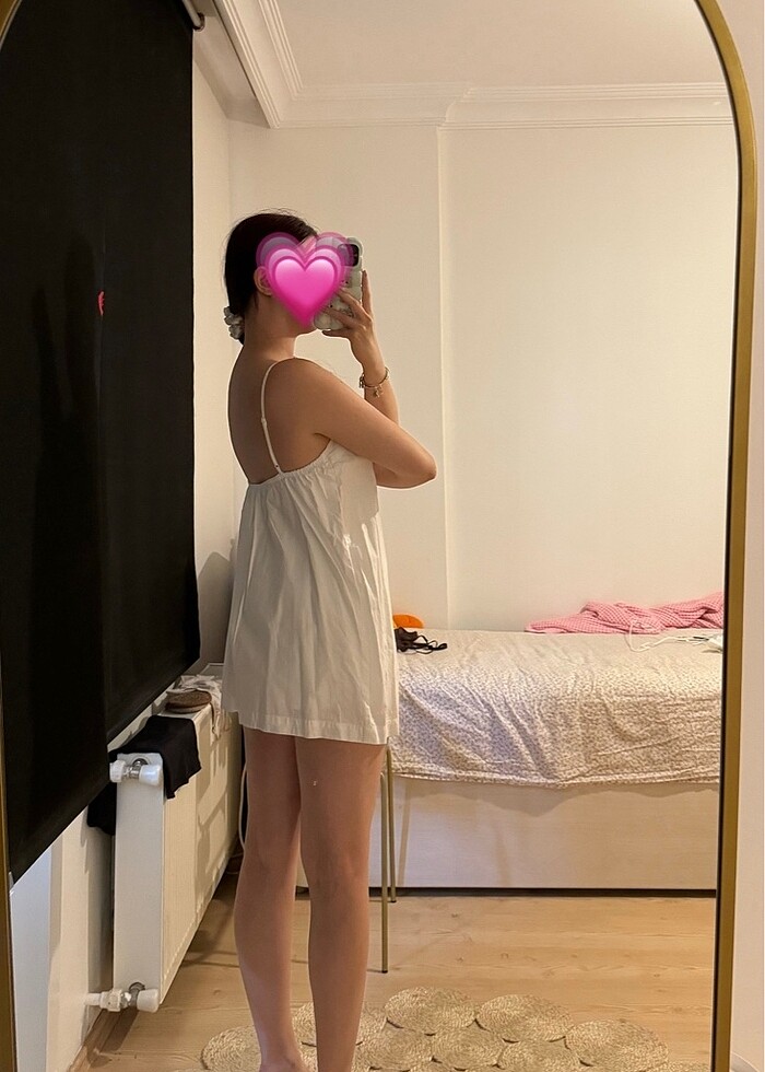 sadece mezuniyette 1 kere giyildi, hiçbir defosu lekesı yada sararması yoktur. içi şortludur bu yüzden rahat ve konforlu kullanımı var. askıları ayarlanabilir. çok şık bir parçadır. mantıklı tekliflere açığım.