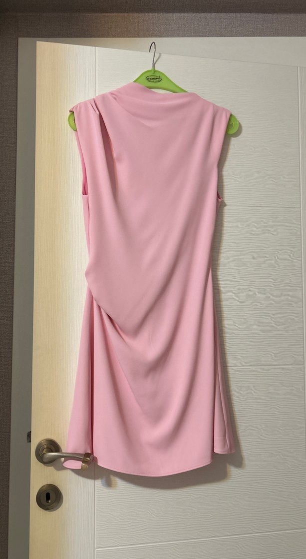 Pembe renkte kolsuz, V yakalı midi elbise, drapeli tasarımı ve vücuda oturan kesimiyle günlük kullanıma uygundur. S beden Zara mağazasından alındı bir kez giyildi hiç bir kusuru yok ürün kodu 3128/324/620 almak isteyen mesaj atarsa detaylı fotoğraflarını atabilirim