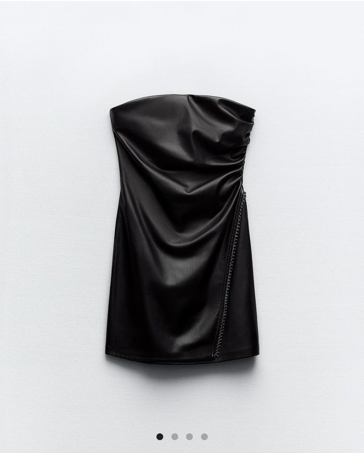 Siyah deri straplez mini elbise güzel şık elbise Sıfır ve etiketli ürün