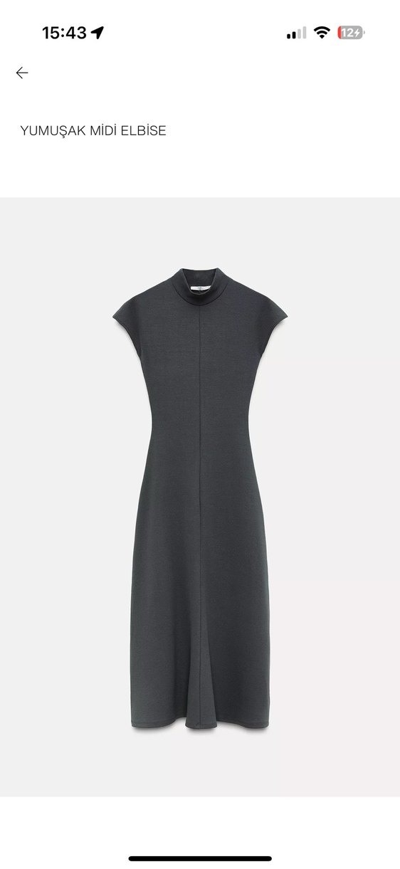 Zara elbise Gri Yüksek Yakalı Kolsuz Uzun Elbise