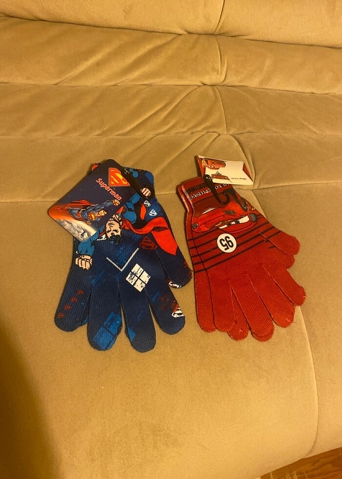 Çok tatlı şık 2 eldiven , tarzları farklıdır , çok havalı çok güzel 2 eldiven, 7-9 yaş arası olur , marka temsili ,adet fiyatı , pazarda dümdüz eldivenler 100 lira , dolabında çok sayıda çocuk ürünü var kıyafetler çocuk kitapları oyuncaklar mutlaka inceleyin