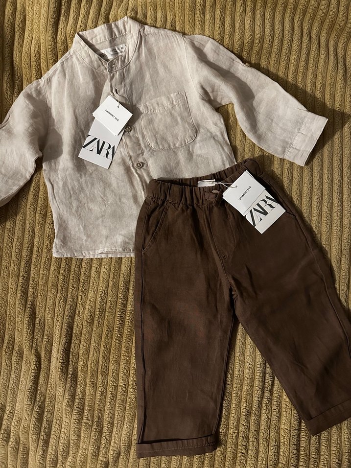 Zara etiketli erkek 12-18 ay keten takım. Gömlek %100 keten, pantolon %51 keten %49 liyosel