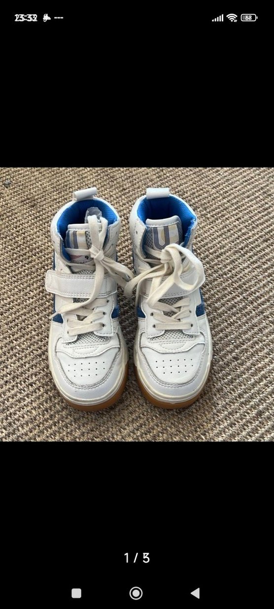 Beyaz erkek çocuk spor ayakkabısı, Velcro ve bağcık kapamalı, kauçuk tabanlı, açık renk ve desensiz sokak stili için uygun.