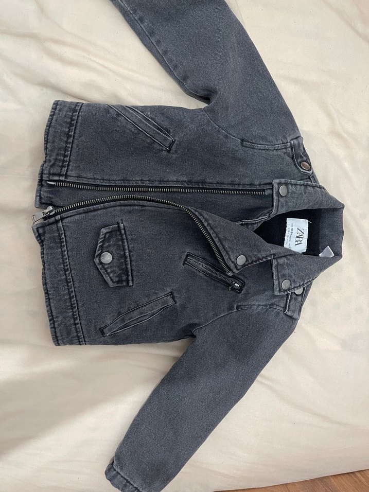 Fermuarlı, notched lapel detaylı, gri denim kumaştan yapılmış erkek çocuk . Şık ve desensiz tasarımıyla trend günlük kullanım için uygundur.