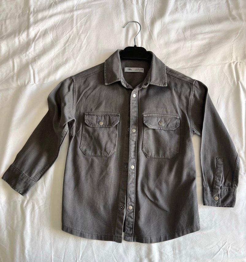 Zara Erkek çocuk Gri Denim Düğmeli Uzun Kollu Gömlek