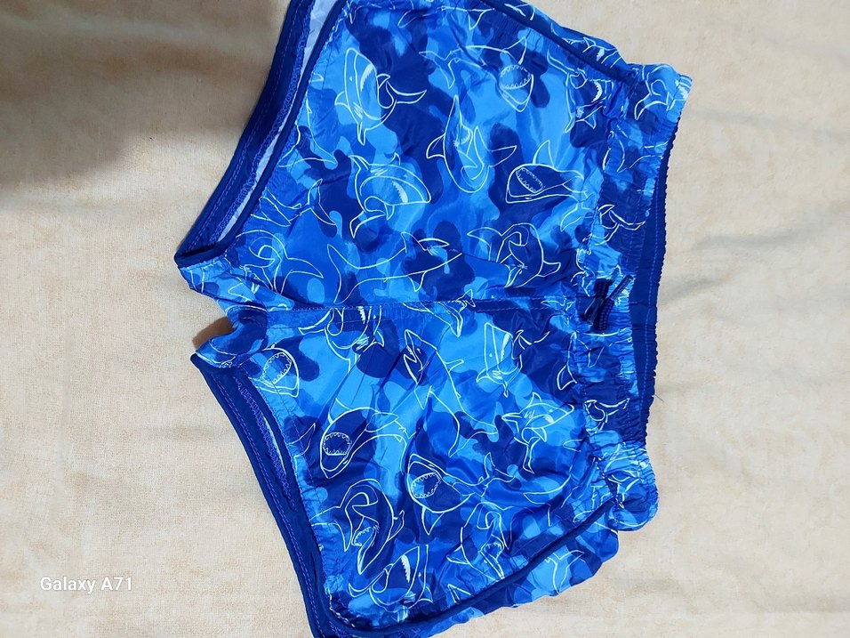 Bağlama desenli renkli mavi erkek çocuk mayo şortu, köpekbalığı figürlü. Elastik bel lastiği ile rahat kullanım sağlar. Yeni ayarinda çok az giyildi sorunsuz temiz ürün