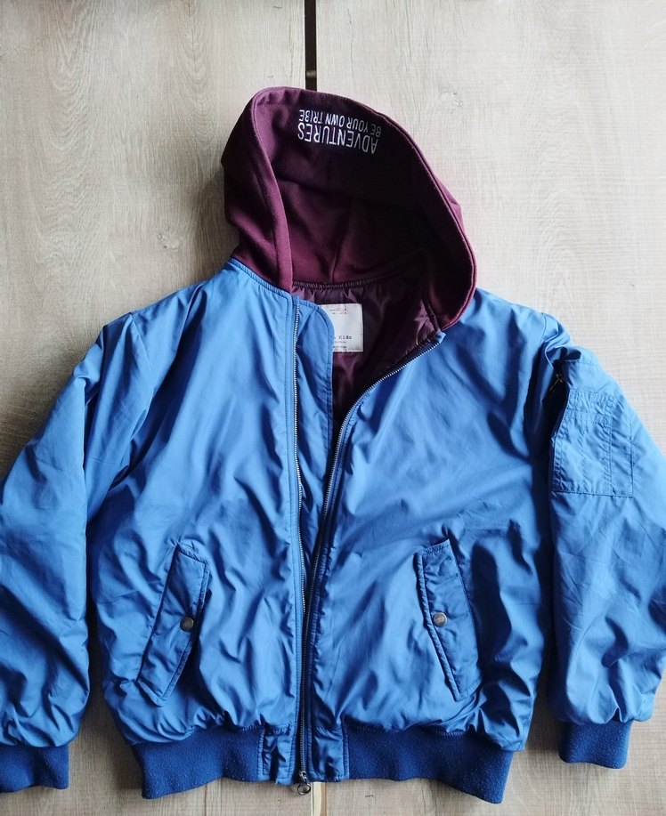 Erkek çocuk için kapüşonlu ve fermuarlı mont. Rahat kesimli, yumuşak ve sıcak kumaştan, koyu mavi renkte sade tasarım. 13-14 yaş. 164 cm. Boy:62 cm iki ool arasi:58 cm. kolda minik bir delik var fotografta bellidir.