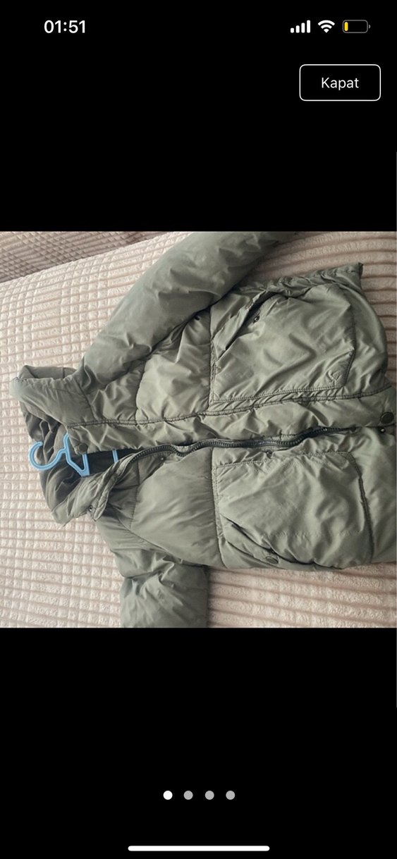 Fermuarlı, kuş tüyü su geçirmez orijinal zara mont geçen kış giyildi bu kış küçük geldi artık. Normal uzunlukta, strappy kollu,
