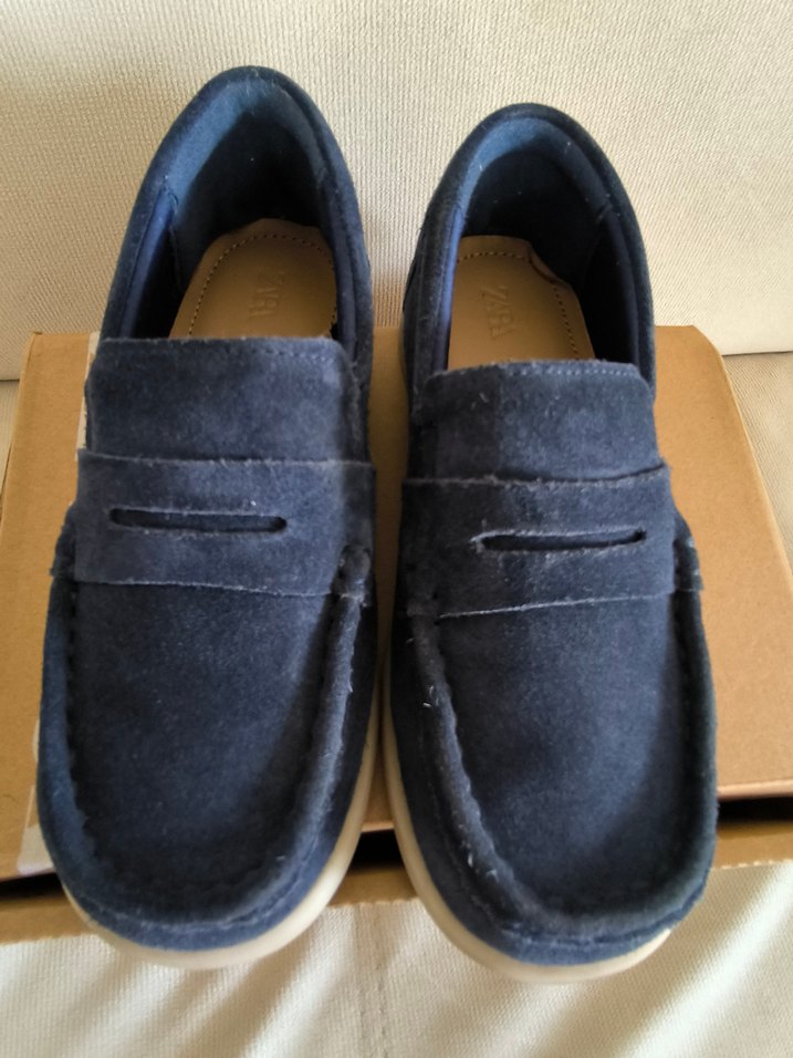 #zaraı süet malzemeden yapılmış koyu mavi erkek çocuk loafer ayakkabı.sadece bir kere giyilmiştir.